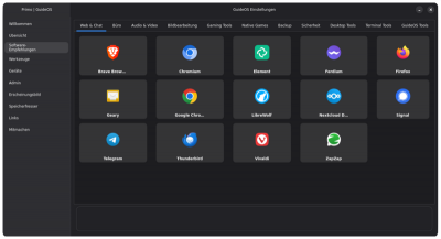 Primo ist das zentrale Einstellungs- und Verwaltungstool für GuideOS. Die Anwendung bietet Linux-Einsteigern einen einfachen Zugang zu Systemkonfiguration, Software-Installation und Hardware-Verwaltung.