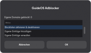 - Blocklisten aktivieren & deaktivieren: Auswahl der gewünschten Blocklisten per Checkbox
