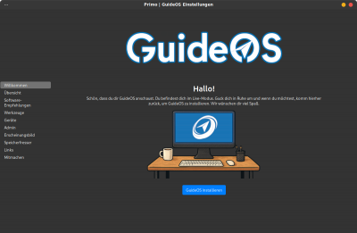 Nach dem Booten erscheint Primo, die Schaltzentrale von GuideOS.